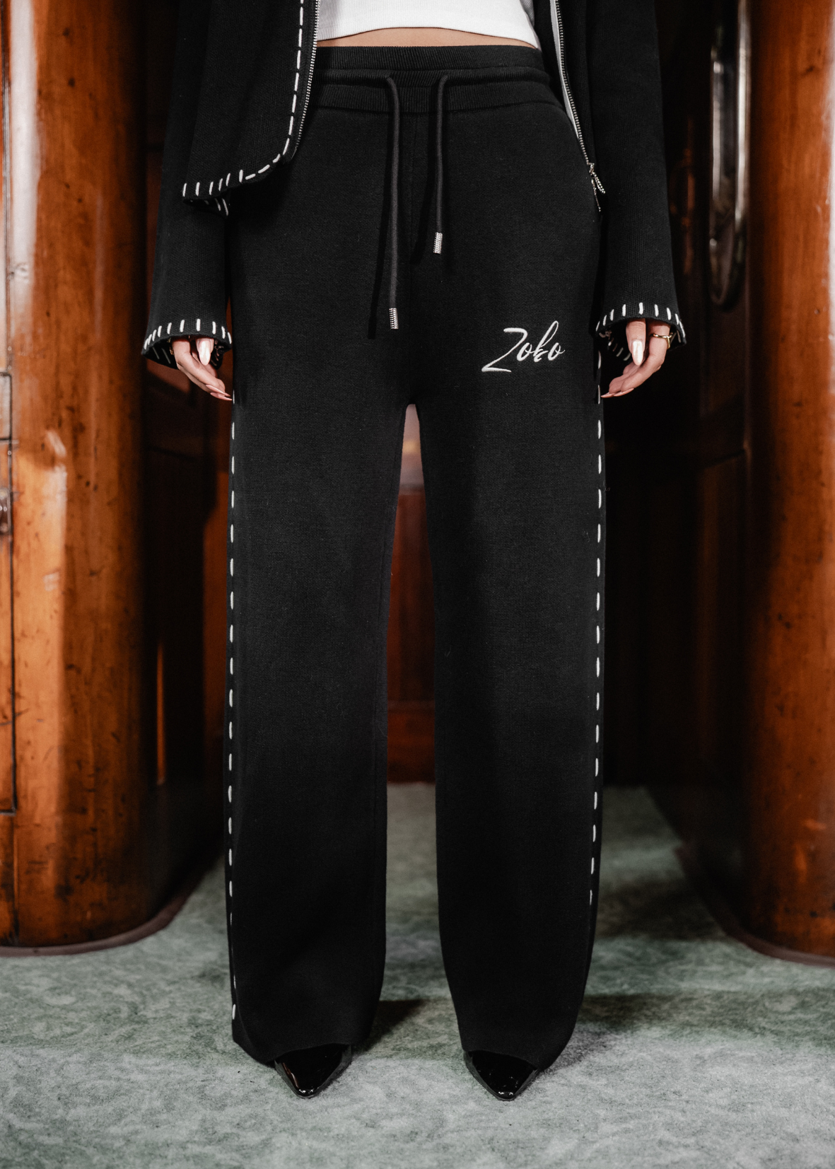 Hand Embroidery Knit Trouser - Deep Black