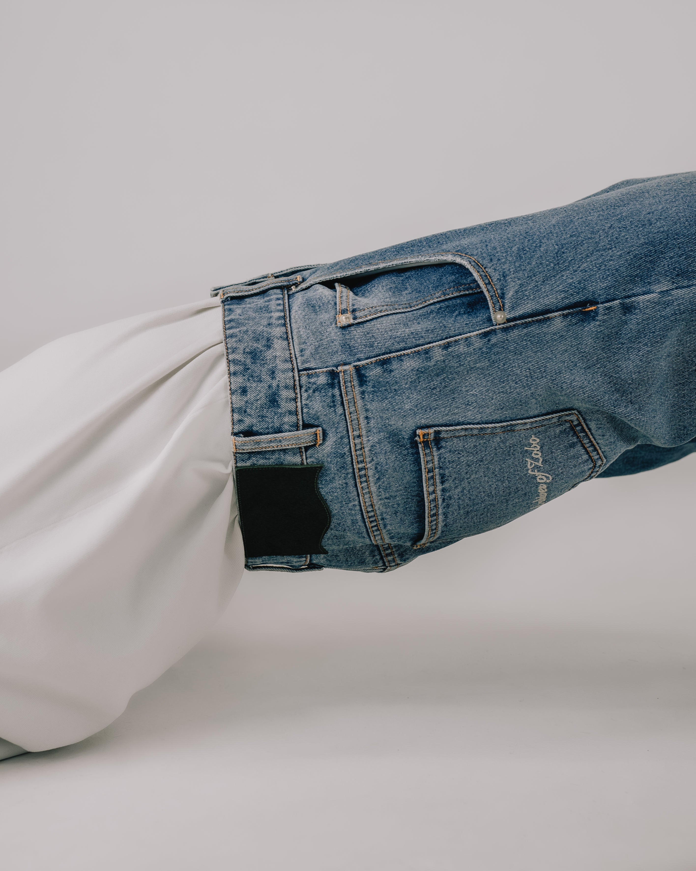 We were striving for a denim which drapes on the body so effortlessly. It has an athletic drape, even when one is simply standing.